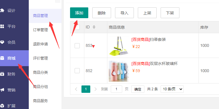 然后是添加產(chǎn)品或者管理產(chǎn)品