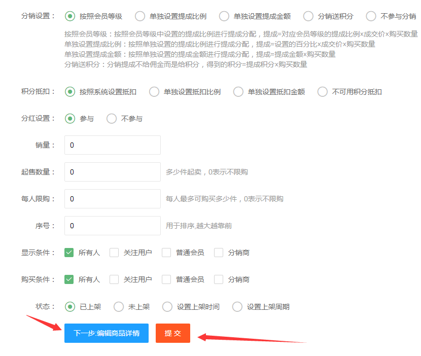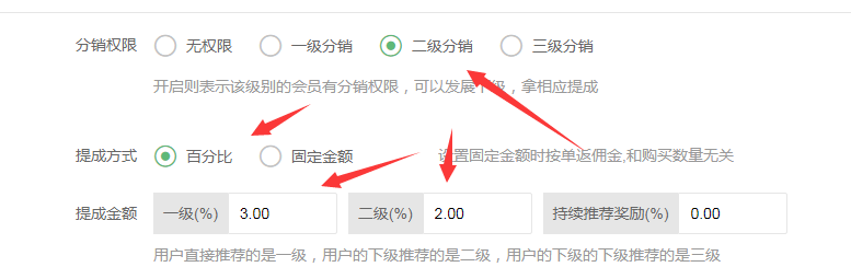 然后下面是設(shè)置分銷的提成比例,統(tǒng)一設(shè)置,也可以每個(gè)產(chǎn)品里面單獨(dú)設(shè)置