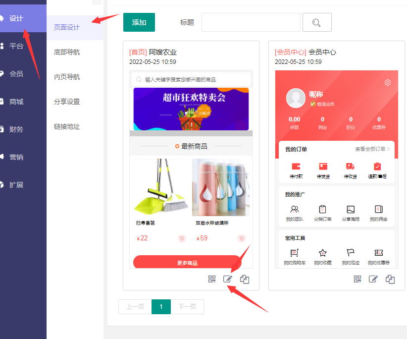 頁面設(shè)計(jì),主要針對(duì)主要,和自定義添加的頁面