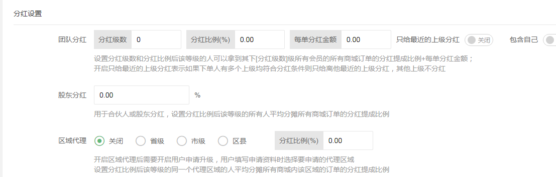 分紅 區(qū)域代理,這個(gè)根據(jù)自己需求設(shè)置,一般懂的人才會(huì)用,分銷模式,可以不用這個(gè)
