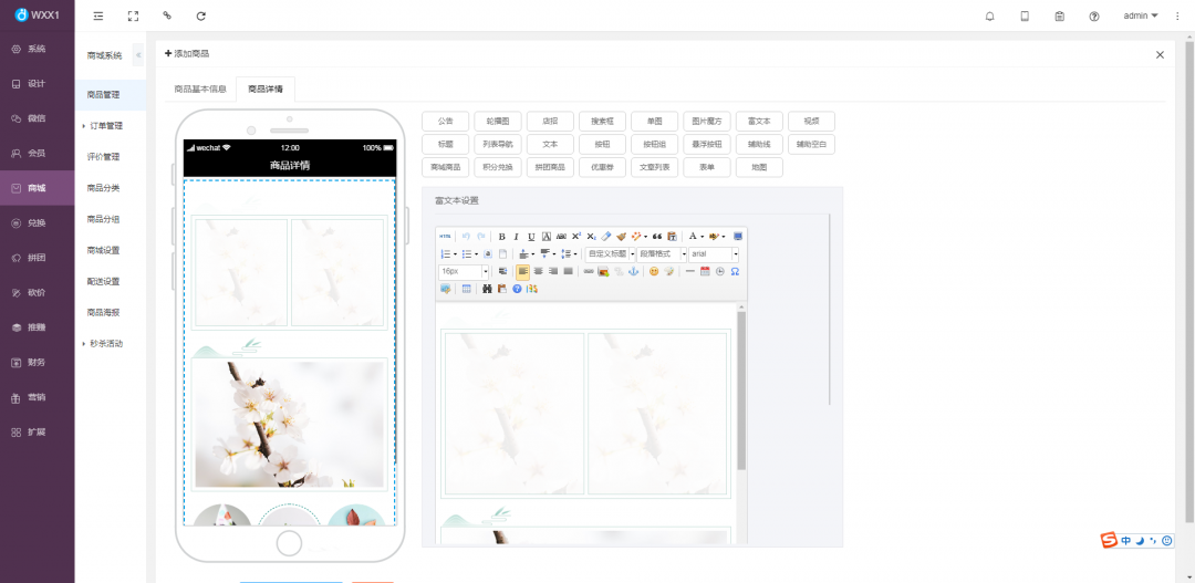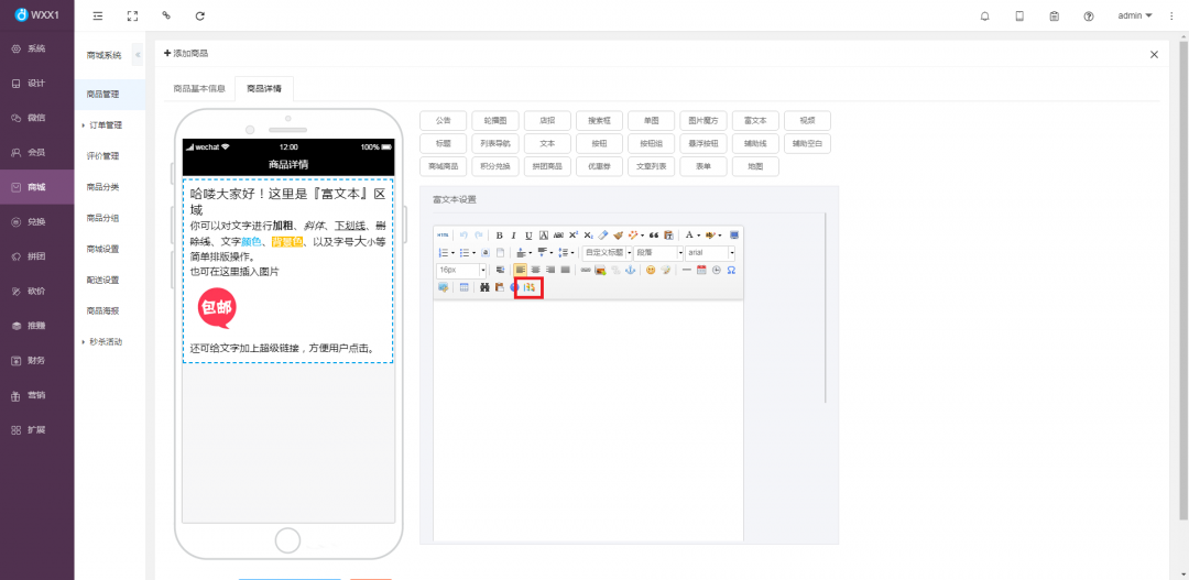 1、在平臺(tái)編輯圖文的界面,如:編輯商品詳情,點(diǎn)擊135按鈕
