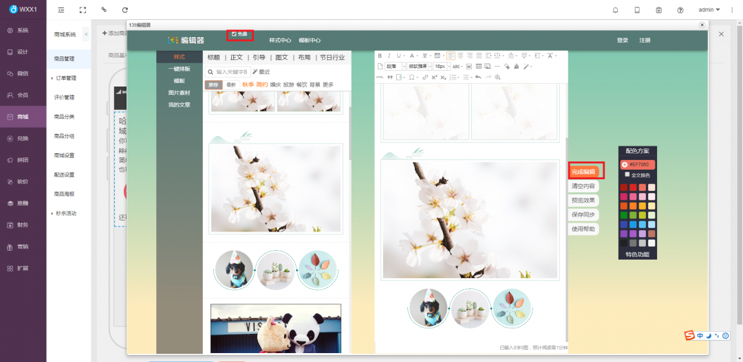 本平臺(tái)富文本編輯器支持調(diào)用135編輯器編輯內(nèi)容,無(wú)需用戶(hù)再前往135編輯器編輯完內(nèi)容再?gòu)?fù)制到本平臺(tái)