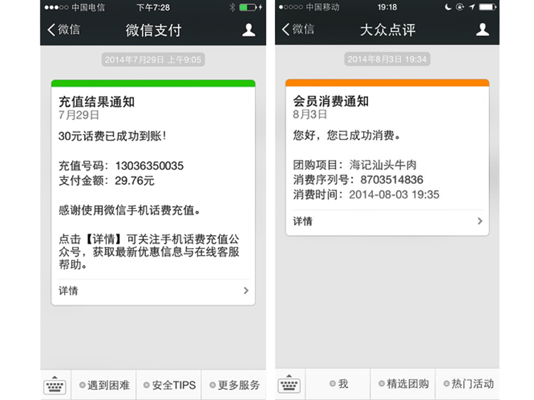 模板消息僅用于公眾號(hào)向用戶發(fā)送重要的服務(wù)通知,只能用于符合其要求的服務(wù)場(chǎng)景中,如信用卡刷卡通知,商品購(gòu)買(mǎi)成功通知等。不支持廣告等營(yíng)銷(xiāo)類(lèi)消息以及其它所有可能對(duì)用戶造成騷擾的消息。