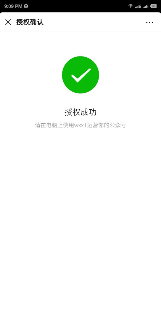 第三步:點擊授權,即可授權完成,電腦端顯示授權的公眾號信息,授權完成后就可以在【微信】-【公眾號管理】及【公眾號設置中】管理您的微信公眾號了